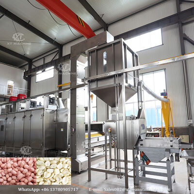 Ολοκληρωμένη αυτοματοποιημένη γραμμή παραγωγής καβουρδίσματος και λεύκανσης φυστικιών σχεδιασμένη ειδικά για εργοστάσια επεξεργασίας ξηρών καρπών. Αυτό το ενσωματωμένο σύστημα χειρίζεται ολόκληρη τη διαδικασία από τα ακατέργαστα φυστίκια μέχρι τα τελικά, συσκευασμένα προϊόντα.
